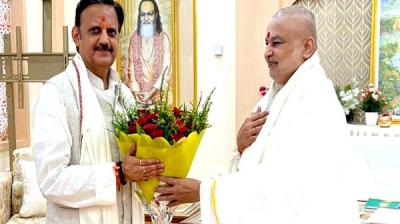 भोपाल : उप मुख्यमंत्री राजेन्द्र शुक्ल ने भोपाल में ब्रह्मचारी महर्षि गिरीश से सौजन्य भेंट की। इस अवसर पर उन्होंने आध्यात्म एवं स्वास्थ्य विषयों पर चर्चा कर मार्गदर्शन प्राप्त किया।