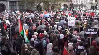 लंदन में सैंकड़ों फलस्तीन समर्थकों ने निकाला मार्च