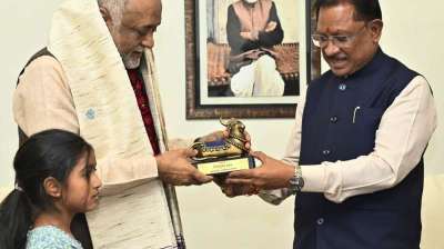 सीएम साय ने अमलेश्वर स्थित हार्टफुलनेस योगाश्रम में योग गुरु कमलेश डी पटेल से मुलाकात की