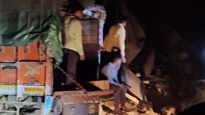 ट्राला दुर्घटनाग्रस्त होते ही शराब की लूट, रोकने गई पुलिस टीम पर बरसे पत्थर