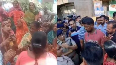 महिलाओं ने धरना दिया, भजन-कीर्तन के साथ विरोध प्रदर्शन