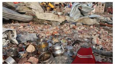 हरदा की पटाखा फैक्टरी में बिखरे टिफिन, फटे कपड़े बता रहे हैं बर्बादी का मंजर
