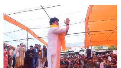 बुंदेली लोकगीत पर मंच पर थिरकने लगे ज्योतिरादित्य सिंधिया