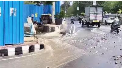 भोपाल में लोक भवन के सामने सड़क धंसने से हड़कंप, पानी भराव से लोग परेशान