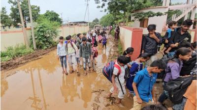सड़क से लेकर कक्षा तक फैला पानी, अभिभावक बोले- बच्चों की सुरक्षा सबसे पहले