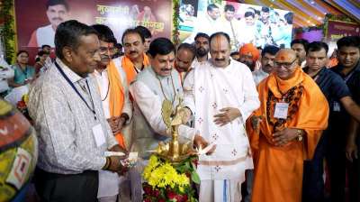 मुख्यमंत्री डॉ. मोहन यादव, राष्ट्रीय उपाध्यक्ष श्रीमती वसुंधरा राजे एवं प्रदेश सरकार के मंत्री श्री कैलाश विजयवर्गीय ने आज इंदौर के रवींद्र नाट्य गृह में डॉ. अंबेडकर सम्मान अभियान के अंतर्गत आयोजित संगोष्ठी को किया संबोधित