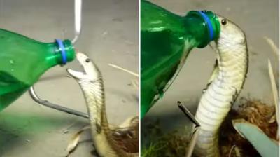 शिकार की तलाश में कोबरा आधी रात को पहुंचा तालाब किनारे, मछली की खुशबू ने बनाया फंसने का रास्ता