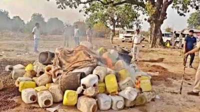 पुलिस की ताबड़तोड़ कार्रवाई, 15 घरों से बरामद किया 60 क्विंटल लाहन, मैदान में डिब्बे सहित किया नष्ट