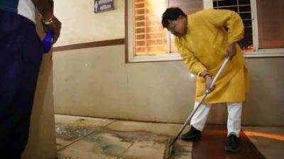 स्वास्थ्य सेवाओं पर नाराज मंत्री तोमर ने अस्पताल की पानी टंकी की खुद की सफाई