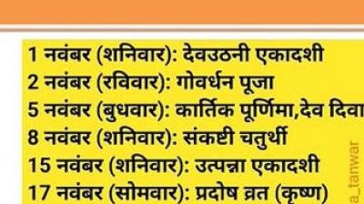 नवंबर 2025 में पड़ने वाले व्रत और त्योहार