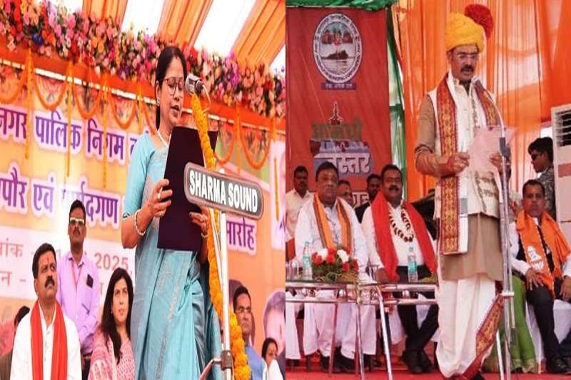 जगदलपुर में उपमुख्यमंत्री अरुण साव की मौजूदगी में नगर निगम जगदलपुर के नवनिर्वाचित महापौर और पार्षदों का शपथ ग्रहण समारोह शनिवार को बस्तर की आराध्य देवी मां दंतेश्वरी मंदिर जगदलपुर के प्रांगण में आयोजित किया गया। इस अवसर पर कलेक्टर हरिस एस ने महापौर और पार्षदों को शपथ दिलाई।