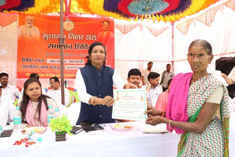 रायपुर : सुशासन तिहार 2025 के तीसरे चरण में बीजापुर जिले के उसूर ब्लॉक के संकनपल्ली ग्राम पंचायत में समाधान शिविर का आयोजन हुआ। जिसमें ग्राम पंचायत संकनपल्ली, ईलमिड़ी, सेमलडोडी, लंकापल्ली एवं ग्राम पंचायत एंगपल्ली के हजारों की संख्या में ग्रामीण शामिल हुए। समाधान शिविर का जन चौपाल आम पेड़ के छांव में लगा।