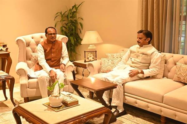 भोपाल : उप मुख्यमंत्री राजेन्द्र शुक्ल ने भोपाल स्थित निवास पर केंद्रीय कृषि एवं किसान तथा ग्रामीण विकास मंत्री शिवराज सिंह चौहान का आत्मीय स्वागत एवं अभिनंदन किया। इस अवसर पर मध्यप्रदेश के समग्र विकास, मुख्यत: किसानों के हित में चल रही योजनाओं के संबंध में विस्तृत चर्चा हुई।