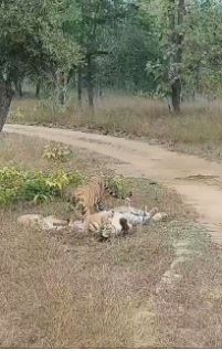 दरअसल, करीब दो महीने पहले, बड़े होने के बाद ये शावक अपनी मां T28 'मौसी' से अलग हो गए थे। अब दोबारा उनकी मुलाकात ने सभी का दिल जीत लिया है। वायरल वीडियो में साफ तौर पर देखा जा सकता है कि सभी शावक मौसी मां के साथ अटखेलियां कर रहे हैं और वह भी उन्हें स्नेहपूर्वक प्यार जता रही है।