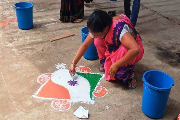 बहनों ने रंगोली बनाकर दिया "हर घर तिरंगा" अभियान का संदेश