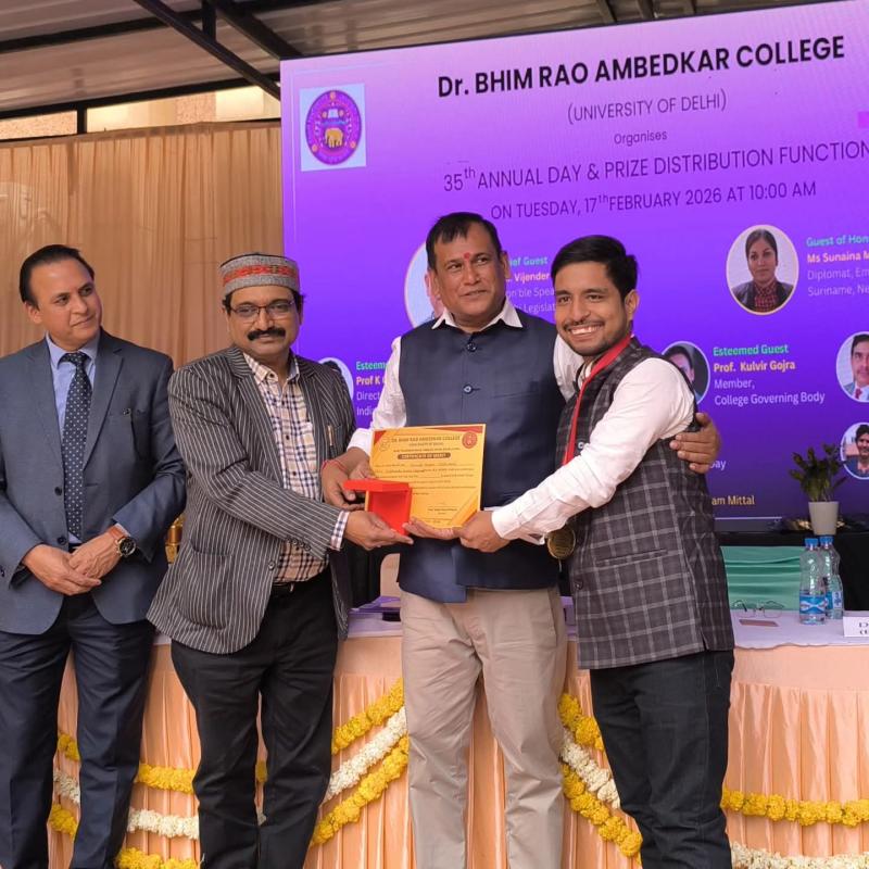नई दिल्ली में मंगलवार को डॉ बी आर अम्बेडकर महाविद्यालय के वार्षिक उत्सव का आयोजन हुआ। इस कार्यक्रम में गणमान्य व्यक्तियों ने हिस्सा लिया और मेधावी छात्र-3 छात्राओं का सम्मान किया गया। इस समारोह में दिल्ली विश्वविद्यालय और 'बाबू प्रियव्रत नारायण सिंह शिक्षा समिति' के साझा सहयोग से पिछले २३ वर्षों से दिया जाने वाला 'श्री शीतल प्रसाद सिंह पत्रकारिता पुरस्कार' इस वर्ष श्री करुणा नयन चतुर्वेदी को दिया गया। वो दिल्ली विश्वविद्यालय में हिंदी पत्रकारिता और जनसंचार के चतुर्थ वर्ष के छात्र हैं। डीयू और बाबू प्रियव्रत नारायण सिंह शिक्षा समिति द्वारा ही सोशल वर्क पाठ्यक्रम में सबसे अधिक अंक लाने वाले छात्र को २३ वर्षों से निरंतर दिया जाने वाला 'बाबू प्रियव्रत नारायण सिंह गोल्ड मेडल' इस वर्ष बीए ऑनर्स की छात्रा इति श्रीवास्तव को दिया गया।