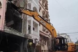 महाकाल लोक क्षेत्र में अवैध मकान-होटलों पर चला बुलडोजर