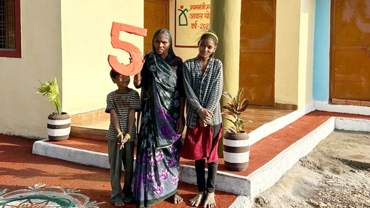 मुन्नीबाई आदिवासी अपने नये पक्के घर में
