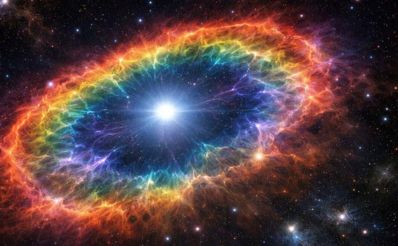 नई दिल्ली। खगोल वैज्ञानिकों को ब्रह्मांड से जुड़ी ताजा एवं हैरान करने वाली खोज ने सोचने पर मजबूर कर दिया है। ब्रम्हांड में पृथ्वी से करीब 731 प्रकाश वर्ष दूर आरएक्सजे0528प्लस2838 नामक एक सफेद बौने तारे के चारों ओर एक चमकता हुआ नेबुला देखा गया है। यह नेबुला देखने में इंद्रधनुष जैसा प्रतीत होता है। यह खोज इसलिए चौंकाने वाली है क्योंकि सफेद बौने तारे को आमतौर पर ‘मृत तारा’ माना जाता है, जिनमें ऊर्जा उत्पादन की कोई सक्रिय प्रक्रिया नहीं होती। इसके बावजूद इस तारे के आसपास पिछले करीब 1000 वर्षों से बना हुआ एक रहस्यमय ‘बो शॉक’ नजर आया है, जिसने अब तक के खगोलीय सिद्धांतों को चुनौती दे दी है। खगोल विज्ञान के अनुसार, जब सूर्य जैसे तारे अपना ईंधन पूरी तरह खत्म कर लेते हैं, तो वे सिकुड़कर सफेद बौने तारे बन जाते हैं। इन तारों में नाभिकीय संलयन बंद हो जाता है, जिससे इन्हें शांत और निष्क्रिय माना जाता है। आरएक्सजे0528प्लस2838 भी आकार में पृथ्वी के बराबर है, लेकिन इसका द्रव्यमान सूर्य जितना है।