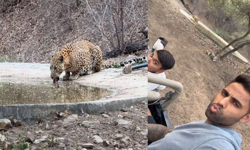 सूर्यकुमार यादव और उनकी पत्नी को घूमते हुए तेंदुआ बीच सड़क पर नहीं मिला. बल्कि, तेंदए के साथ इन दोनों का एनकाउंडर तब हुआ जब ये उसके इलाके में यानी कि झलाना लेपर्ड सफारी घूमने पहुंचे. उन्होंने वहां तेंदुए का जबरदस्त मूवमेंट देखा. उन्होंने उसे पानी पीते हुए सूट किया. उसकी चाल को फिल्माया. उसे आराम करते हुए भी सूट किया और वीडियो को सोशल मीडिया पर शेयर किया.