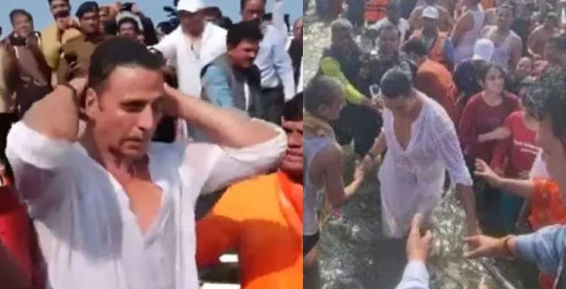 संगम में डुबकी लगाते हुए अक्षय कुमार ने की योगी सरकार की तारीफ
