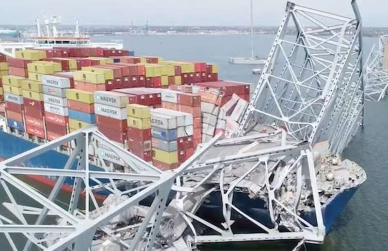 एक रिपोर्ट के अनुसार कहा जा रहा है कि सिंगापुर के झंडे वाला कंटेनर जहाज मंगलवार तड़के बाल्टीमोर शहर के फ्रांसिस स्कॉट की ब्रिज से यह 300 मीटर लंबा यह जहाज पुल के एक खंभे से टकरा गया। जिसके टकराने कई वाहन और लगभग 20 लोग नदी में गिर गए थे। अमेरिकी अधिकारियों का कहना है कि जहाज के चालक दल ने टक्कर से पहले बिजली की समस्या की सूचना दी थी। रिपोर्ट में बताया कि कंटेनर जहाज डीएएलआई के मालिकों ने बताया कि जहाज मंगलवार को फ्रांसिस स्कॉट के बाल्टीमोर पुल के एक खंभे से टकरा गया था इसमें सवार दो पायलटों सहित चालक दल के सभी सदस्यों का पता लगा लिया गया है और किसी के घायल होने की कोई सूचना नहीं है।