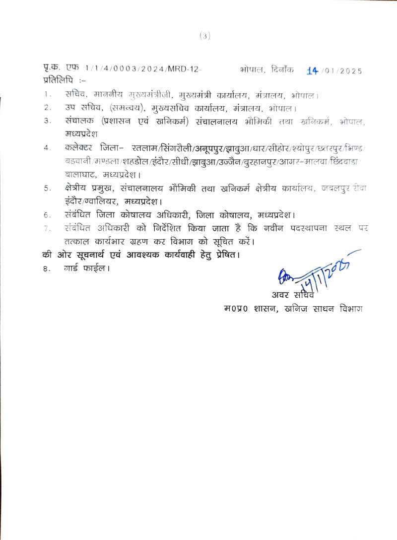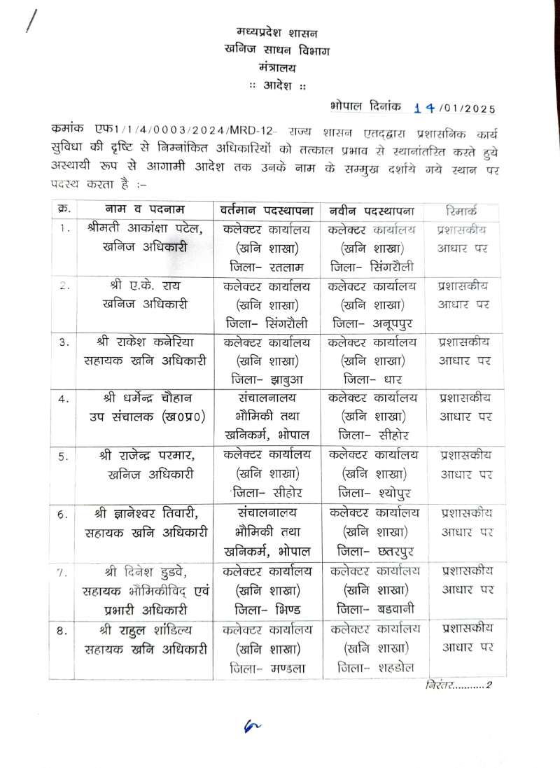 भोपाल: खनिज अधिकारियों के हुए तबादले