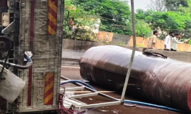 ट्रक का टायर फटा, पलटा टैंकर… हाईवे पर अफरा-तफरी