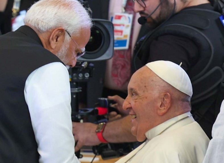 पीएम मोदी जी 7 समिट में पोप फ्रांसिस से मिले। प्रधानमंत्री नरेन्द्र मोदी ने पोप फ्रांसिस को भारत आने का न्योता दिया है । उम्मीद की जा रही है कि इस बार पोप फ्रांसिस भारत दौरे पर आएंगे। पीएम मोदी 87 वर्षीय पोप फ्रांसि के साथ गले मिले और हल्के-फुल्के अंदाज में बातचीत करते नजर आए। पोप फ्रांसिस को पीएम मोदी ने साल 2016 और 2021 में भी भारत आने का न्योता दिया था। मगर वह नहीं आए। इस बार भी पीएम मोदी ने इटली में जी7 शिखर सम्मेलन के इतर वेटिकन के चीफ पोप फ्रांसिस को भारत आने का न्योता दिया। अब देखने वाली बात है कि पोप फ्रांसिस आते हैं या नहीं, या फिर आते हैं तो कब। अगर वह आते हैं तो हिंदू बहुल राष्ट्र में उनकी यह पहली यात्रा होगी। दरअसल, पीएम मोदी और पोप फ्रांसिस ने इटली के अपुलिया में जी7 शिखर सम्मेलन के ‘आउटरीच सेशन’ में गर्मजोशी से मुलाकात की। पीएम मोदी ने कहा कि मैं लोगों की सेवा करने और हमारे ग्रह को बेहतर बनाने के प्रति उनकी प्रतिबद्धता की सराहना करता हूं। साथ ही उन्हें भारत आने का निमंत्रण भी दिया। वहीं, पोप फ्रांसिस ने भी न्योता स्वीकार कर लिया है। उन्होंने आर्टिफिशियल इंटेलीजेंस (एआई), ऊर्जा, अफ्रीका और भूमध्य सागर विषय पर ‘आउटरीच सेशन’ में अपने संबोधन में कहा कि एआई का बेहतर इस्तेमाल करना हममें से प्रत्येक पर निर्भर करता है। बता दें कि पीएम मोदी रोमन कैथोलिक चर्च के प्रमुख पोप फ्रांसिस से मिलने वाले भारत के पांचवें प्रधानमंत्री हैं।