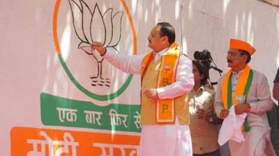 राष्ट्रीय अध्यक्ष जेपी नड्डा ने शकुंतला आर्य के घर के सामने भाजपा का झंडा फहराया