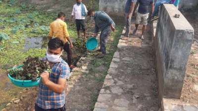 गांवो में श्रमदान से सार्वजनिक एवं धार्मिक स्थानों की साफ-सफाई